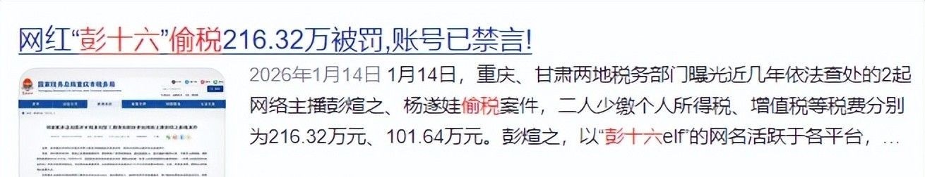 2.京报网:网红“彭十六”偷税216.32万被罚,账号已禁言!