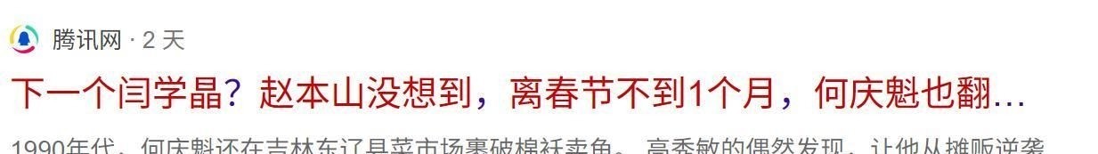 3.腾讯网:下一个闫学晶?赵本山没想到,离春节不到1个月,何庆魁也翻车了